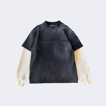מפעל מותאם אישית לוגו מותאם אישית גברים בגודל וינטג 'שטפו שכבה כפולה שרוול ארוך חולצת טריקו 100% כותנה תרמית wffle ארוך